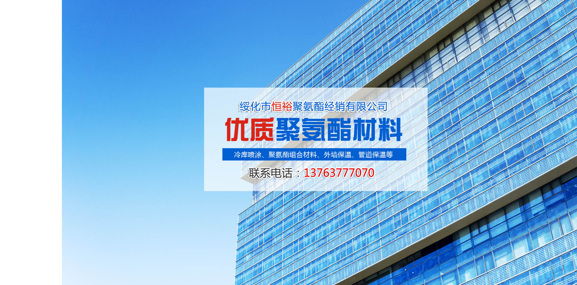綏化市恒裕聚氨酯經銷有限公司是一家集聚氨酯材料 、生產 銷售為 綜合型企業,主要經營聚氨酯組合料(黑白料)銷售,另承接冷庫保溫,別墅保溫,外墻保溫 管道保溫等大中小工程 公司擁有30臺進口噴涂設備,年施工量3000噸。 公司位于綏化市東富工業園區,本著質量為本,誠信至上的原則,精心打造完美工程,優質的售后服務竭誠與您合作。